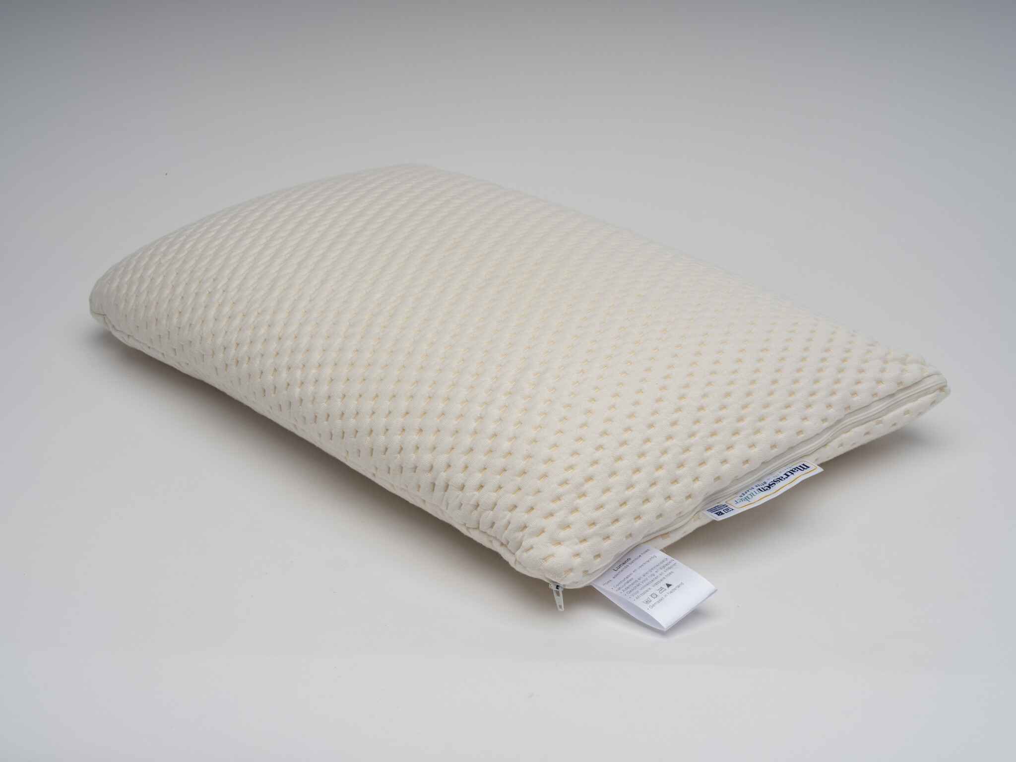 Das Kissen ist bewusst nicht zu hoch, damit Kopf und Nacken in einer natürlichen Position bleiben. Dadurch wird eine angenehme und stabile Unterstützung während der Nacht ermöglicht.